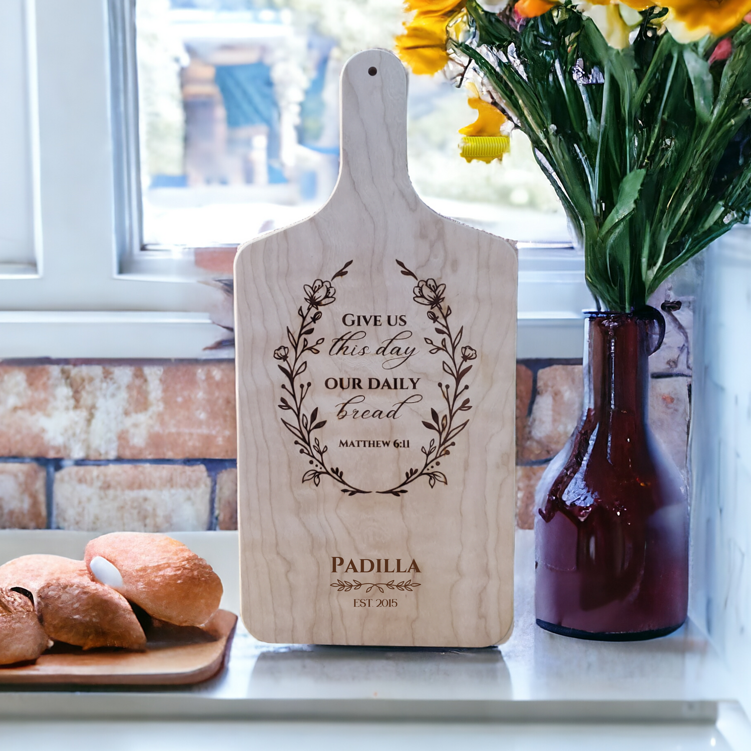 Personalized Cutting/Serving Boards With Bible Verse, "Give Us This Day Our Daily...